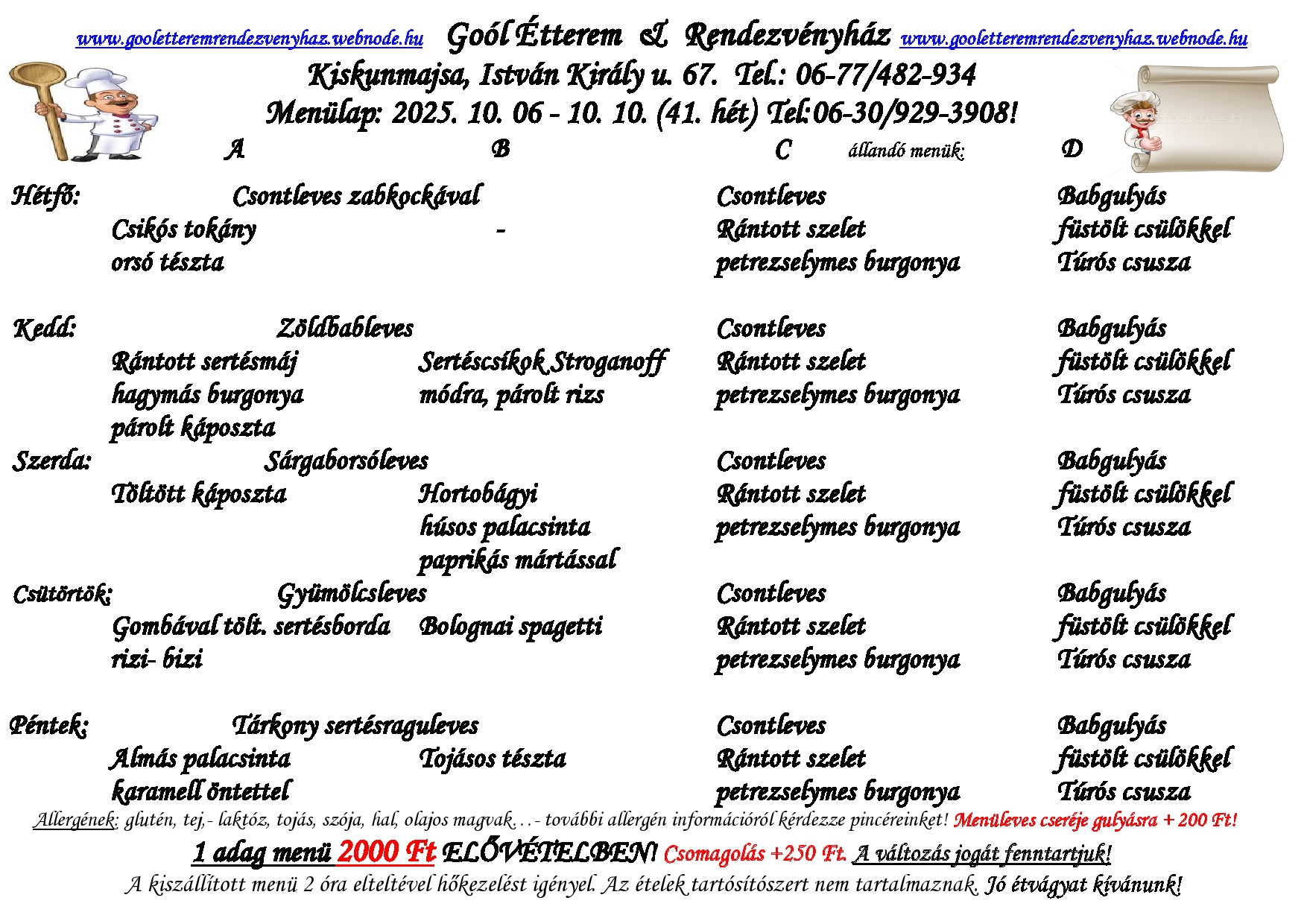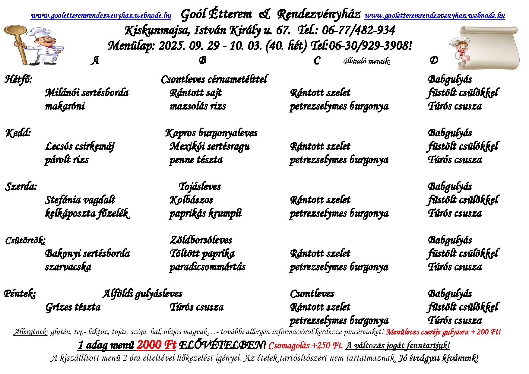 2025. 01. 13- tól a menü ára: 2000 Ftcsomagolás: 250 Ft